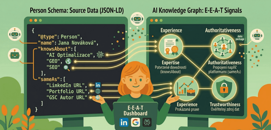 | Chcete vědět, jestli vaše schema markup funguje? Provedu AI audit vašeho webu. Zkontroluji structured data, FAQPage schema i E-E-A-T signály a navrhnu konkrétní úpravy. Podívejte se na službu, kterou nabízím: GEO & AI optimalizace. |